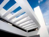 el exterior, la terraza apergolada sirve de antesala a la piscina,